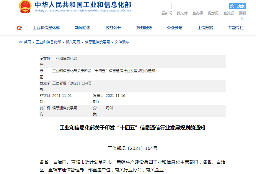 近期,工业和信息化部召开了“十四五”信息通信行业发展规划新闻发布会,工信部网站也正式发布了《工业和信息化部关于印发“十四五”信息通信行业发展规划的通知》(下称“《规划》”),标志着《规划》将成为我国未来五年信息通信行业发展的指导性文件。